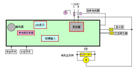4:聲光故障報警及處理:進水超時報警、排水超時報警、脫水開門報警,不平衡處理。