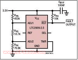 LTC2909能夠監視兩個電源(正電源、負電源或正負電源)的欠壓和/或過壓狀態;可以同時監視單個電源(正或負)的欠壓和過壓狀態。其可調跳變門限用外部電阻分壓器網絡設置,使用戶能夠完全控制跳變點,并根據特定設計的需求來定制LTC2909。