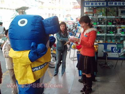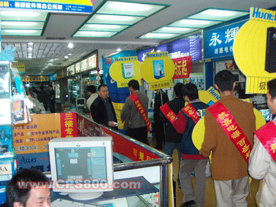 第二天,航嘉在惠州電腦市場進行了展示和賣場走秀活動,給惠州的消費者和電腦公司送出了航嘉的賀年禮品和吉祥物。