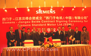2005年12月12日,西門子(中國)有限公司自動化與驅動集團(A&D)與中國合作伙伴江蘇貝得電機股份有限公司簽定協議,雙方合作在江蘇揚州建立西門子電機(中國)有限公司(SSML)。新公司將擁有大約1500名員工,致力于提供全系列中小型低壓電機產品開發和制造服務。憑借SSML的產品供應與西門子(中國)有限公司強大市場覆蓋的協同優勢,西門子計劃在中國中檔價位的細分市場取得領先地位。新的合資公司將按程序申請獲得相關部門的批準。