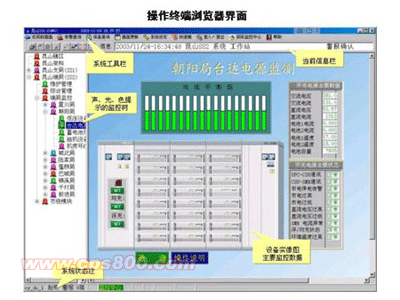 操作終端采用樹狀管理功能,將各監控點集合成一個相關的多媒體告警圖標,不同顏色對應于不同告警等級,警報發生時伴有閃爍和聲音提示。在樹狀告警顯示區單擊鼠標即可調出相應設備畫面,查詢設備狀態。以設備實像圖作為主要界面,并可根據設備運行狀態同時產生動畫效果,界面形象、友好。在主界面數據顯示區上單擊右鍵,依照密碼權限即可進行在線參數編輯,修改告警門限、警報等級……,更改確定后,系統立即反應。用戶可查詢任一模擬量的實時曲線、告警曲線、歷史曲線,幫助了解監測數據變化情況及告警發生前后的變化過程。用戶可根據需要設定:邏輯控制、定時控制、警報過濾、仿真模擬、告警信息發送短信……系統管理功能,能更大程度的滿足用戶的需求。具備各種標準軟件模板和各類編輯指令,用戶只需短期培訓即可掌握軟件的編輯和維護。