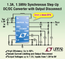 LTC3458 EDE 采用扁平(0.75mm)4mm x 3mm QFN 封裝,有現貨供應。以 1,000 片為單位批量購買,每片起價為 3.30 美元。