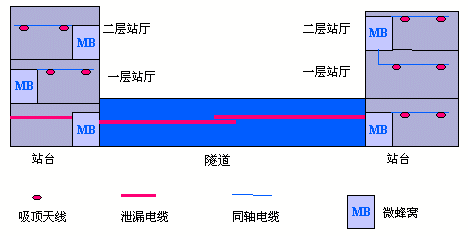 站廳區(qū)域的覆蓋:站廳一般采用同軸分布式系統(tǒng)作為信號(hào)源的延伸,最后由天線陣列將信號(hào)均勻地輻射到站廳的每一個(gè)角落,此覆蓋方式與前面介紹的建筑物室內(nèi)覆蓋方式完全一樣,此處不再贅述。