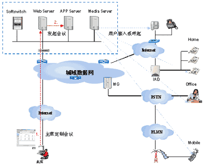 Web Conference業務主要是面向于集團用戶提供電話會議功能,該類用戶需要經常進行內部的討論,同時,個人用戶也可以使用Web 會議業務,朋友間的聊天,家庭成員間的討論都可以通過Web Conference業務進行。