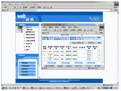 Web Conference業務基于WEB頁面的會議管理功能,使得對于會議的管理更加方便和快捷,如下圖即為Web Conference業務對于時實召開的會議進行監控和管理的界面圖: