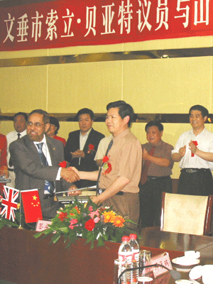 2005年6月5日,英國考文垂市議員索立·貝亞特與山東力創科技有限公司合作簽字儀式在萊蕪賓館舉行(圖)