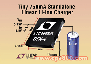 7月27日北京訊,凌特公司(Linear Technology)推出完全集成的纖巧型獨立線性電池充電器 LTC4065 和 LTC4065A,這些器件能夠以高達 750mA 的電流為單節鋰離子電池充電,而并沒有器件或周圍組件過熱的風險。這些全功能集成電路具有定時器終止、再充電、涓流充電和 C/10 檢測功能,采用微型 6 引線 2mm x 2mm DFN 封裝。一個完整的解決方案僅需兩個分立組件(輸入電容器和充電電流編程電阻),足以放入 2.5mm x 2.7mm x 0.75mm 的空間中。應用包括數碼相機、便攜式銷售點和診斷設備、蜂窩電話、PDA 以及具備 USB 接口的手持產品。