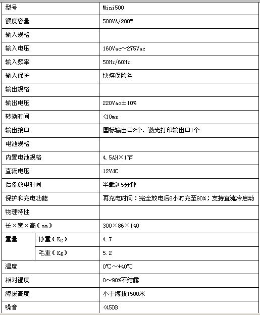 友電Mini500產(chǎn)品技術(shù)參數(shù)表