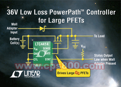 8月17日北京訊,凌特公司(Linear Technology)推出堅固的“理想二極管”電源通路(PowerPathTM)控制器 LTC4414,該器件以極大的柵極電容驅動大 PFET。LTC4414 允許多個輸入 DC 電源的低損耗“或”二極管。其 20mV 正向電壓比肖特基二極管至少低 10 倍。結果,在需要電源之間自動切換或負載共享的系統中,由于低得多的功率損耗和較低的自熱,該器件的效率提高了一個數量級。LTC4414 保證在較寬的使用條件范圍內滿足性能規格要求,這包括環境溫度范圍為 -40oC 至 +125oC 和工作電壓范圍為 3V 至 36V 的情況。采用小型 MSOP 封裝的 LTC4414 還提供電池反向、過流和 MOSFET 保護電路。此外,該器件具有數字控制輸入和開漏狀態輸出引腳,以簡化與微控制器的連接。應用包括通常從多個輸入源獲取功率的系統,例如大電流電源路徑開關、不間斷供電電源、備份電池系統、邏輯控制電源開關和汽車及工業系統。