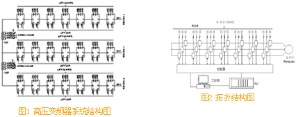 電網電壓(6kV)經過副邊多重化的隔離變壓器降壓后給功率單元供電,功率單元為三相輸入,單相輸出的交直交PWM電壓源型逆變器結構,相鄰功率單元的輸出端串接起來,形成Y接結構,實現變壓變頻的高壓直接輸出,供給高壓電機。6kV輸出電壓每相有7個額定電壓為480V的功率單元串聯而成,輸出相電壓3450V,線電壓達到6kV左右,每個功率單元承受全部的電機電流,但只提供1/7的相電壓和1/21的輸出功率。