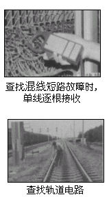 信號發(fā)送器輸出可施加于軌道電路設(shè)備二次電源兩端.人為故障電流一定而且必須經(jīng)過短路點(diǎn).用信號接收器按圖對單根配線進(jìn)行接收,對每根有電平指示的配線,根據(jù)軌道電路設(shè)備圖確認(rèn)屬于電源正或負(fù)的線點(diǎn),這樣,正負(fù)電源線點(diǎn)的交分處即為軌道電路設(shè)備短路故障點(diǎn).