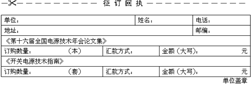 征訂方法:填寫征訂回執,與銀行或郵局匯款回單一并傳真至中國電源學會編輯工作委員會。