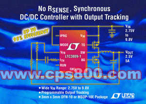 凌特公司(Linear Technology)日前推出采用3mm×3mm DFN-10(或MSOPE-10)封裝的無檢測電阻(No RSENSE)同步降壓型控制器LTC3809-1。
