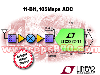 9月28日北京訊,凌特公司(Linear Technology Corporation)推出出口至中國的 11 位 105Msps 模數(shù)轉(zhuǎn)換器 LTC2222-11,該器件對高達 500MHz 的 IF 頻率欠采樣時具有超低抖動。就包括 GSM、CDMA、WCDMA(UMTS)、TD-SCDMA 和 WiMAX 在內(nèi)的所有主要空中接口而言, LTC2222-11 為多載波無線基站收發(fā)器應(yīng)用進行了優(yōu)化。LTC2222-11 具有卓越的 11 位性能,在 140MHz 時具有 65.4dB SNR 和 80dBc SFDR。