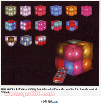 臺(tái)灣廠商Total Charm經(jīng)過8年的LED照明系統(tǒng)的開發(fā),最近推出了小型LED音樂照明系統(tǒng)。該系統(tǒng)配置一個(gè)廠家專利的控制盒,可以自動(dòng)根據(jù)音樂的節(jié)奏改變LED的發(fā)光顏色。公司的總裁Lai Win-cheng說道“當(dāng)播放抒情音樂時(shí)候,LED就會(huì)發(fā)出柔和的光線,當(dāng)播放搖滾樂的時(shí)候,LED就會(huì)發(fā)出閃動(dòng)的光與之配合。”