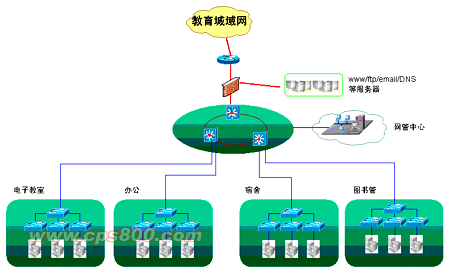 校園網,作為一種獨特的模式,既具有一般企業網的特質,又有其特殊的地方。相同之處在于:作為集團用戶,接入網絡都需要具有一定的獨立性和相當的可統計、可管理性的特性;較之一般的企業網,校園網又會面臨更復雜的用戶類型和業務需求,它不是單純的辦公網絡,是一個承載教學、辦公自動化、圖書館等多種業務和應用的平臺,并且有部分網絡資源用來經營,因此對投資回報有更高的要求。