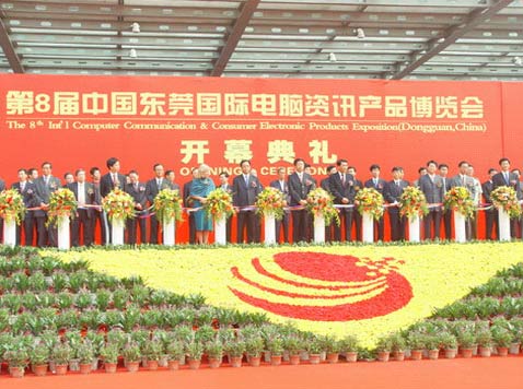 10月17日,第八屆中國東莞國際電腦資訊產品博覽會在東莞國際會展中心隆重揭幕。省委副書記歐廣源、省人大常委會副主任李近維、市委書記、市人大常委會主任劉志庚、市長李毓全,以及東莞市五套班子領導、兩岸三地電子行業協會的負責人等2000多人出席了開幕式。