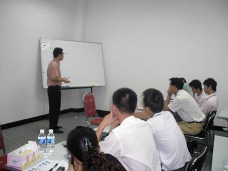 經(jīng)驗豐富的業(yè)務部經(jīng)理姚浪在為學員傳授銷售技巧