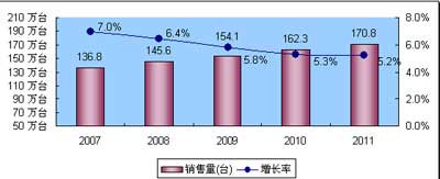 圖4 2007-2011年中國(guó)UPS市場(chǎng)銷售量預(yù)測(cè)