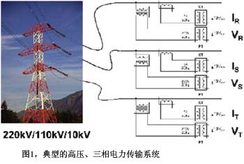 圖1示出了必須測量三相涌流時的典型高壓電力傳輸系統。對所生成的極高電壓必須進行隔離和衰減,以便與低電壓測量及相應控制系統的輸入容量相匹配。通過電源變壓器進行第一級高電壓隔離。例如,來自發電站的220 kV電壓可轉換成只有220V的較低電平。由于這一電壓對于當前的模數轉換器(ADC)還是太大,因此需要進一步進行三相隔離。下一步是將220V的電壓轉換成可測量的±10V信號,以提供必需的控制與保護電路。負載電流測量也需要相同的隔離、測量、控制與保護;通過高壓變壓器可以重復上述操作,以降低電壓。