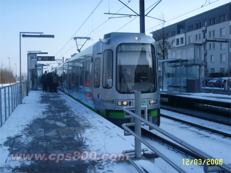 風雪中輕軌車站,大部分人都是乘坐此交通工具來到CEBIT 展會的。