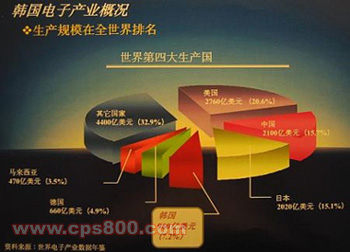 李監烈解釋說,2005年中國賣到韓國的電子類產品(包括整機和元器件)已達100億美元。并且,越來越多的韓國電子產品中采用了中國生產的元器件,“平均來看,韓國產的電子產品中有40%的元器件來自中國制造。當然,這也包括韓國廠商在中國制造的元器件!崩畋O烈表示,雖然韓國對電子元器件的需求量不如中、美、日,但它是全球第四大生產制造大國,去年的生產規模為960億美元,占全球市場的7.2%(數據引自世界電子產業數據年鑒)。因此,中國的廠商,不論是電子元器件廠商,還是整機廠商,參加KES都會受益菲淺。比如海爾已多次參加KES,其產品在韓國很受歡迎,海爾也在韓國成立了辦事處。
