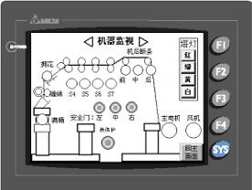 按一下監控鍵進入下面監控屏畫面,按回主畫面鍵返回主屏。此畫面直觀模擬顯示并條機整體運行狀態。故障點的燈白表示正常,灰色表示故障該點處理。