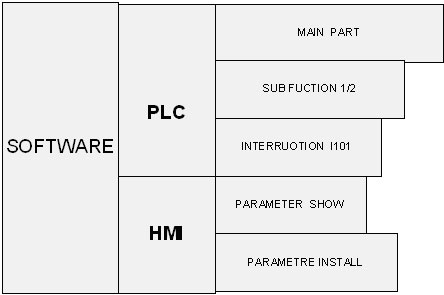 軟件編程是在電氣系統配置情況下,結合工藝要求編寫而成!它包括人機界面程序、可編程控制器程序!具體結構如下: