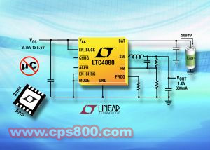 凌特公司(Linear Technology)日前推出具有獨立線性電池充電器和高效率同步降壓型轉換器的多功能集成電路LTC4080。該USB兼容的電池充電器能以高達500mA的電流為單節鋰離子電池充電,而且沒有使器件或周圍組件過熱的風險。而300mA的降壓型穩壓器具有可選工作模式和同步整流功能,以實現高達96%的效率。