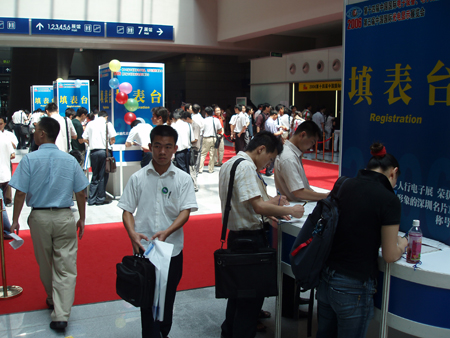 開幕第一天,雖然深圳下起了大雨,卻阻擋不了業(yè)內(nèi)人士的熱情,紛紛前來參觀。一時間,展覽會服務(wù)臺、填表臺人群擁擠。