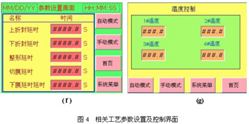 工藝參數設置及相關控制界面等分別如圖4(a)、(b)、(c)、(d)、(e)、(f)、(g)等所示。
