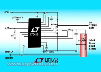 凌特公司日前推出快速、精確智能電池充電控制器LTC4101,該器件有無主微控制器都可工作。該IC完全符合Rev. 1.1 SMBus規范,并滿足了智能電池系統(SBS)二級(Level 2)充電功能的要求。LTC4101為3V至5.5V充電電壓而優化,適用于單節鋰離子電池和3至4節鎳化學電池充電。它能夠以高達4A的電流快速充電,電壓準確度為0.8%,電流準確度為4%。同步開關工作實現了在6V至28V的寬輸入電源電壓范圍內的高效率充電。LTC4101采用小型24引腳SSOP封裝,非常適用于便攜式計算機和儀器。