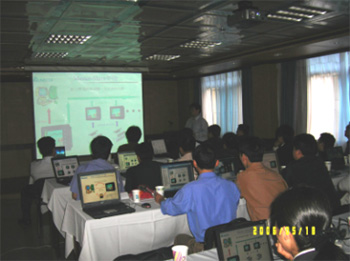 此次培訓(xùn)由臺達(dá)電子林志隆先生主講,林先生首先向與會者介紹了臺達(dá)AE系列人機(jī)產(chǎn)品及06年剛上市的人機(jī)新品;據(jù)他介紹,AE系列臺達(dá)人機(jī)是臺達(dá)最新推出的人機(jī)系列,該系列產(chǎn)品不論在品質(zhì)還是性能上相比原有產(chǎn)品都有了進(jìn)一步的提升,最新上市的AE系列人機(jī)不僅提供了65535色高分辨率顯示(8吋/10.4吋),還包含了直接驅(qū)動打印機(jī)功能,此外,產(chǎn)品在硬件方面也有了很大的改進(jìn)和完善,產(chǎn)品序列更加完整,深受用戶的好評。