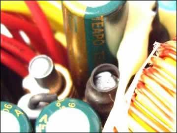 首先、電容換為性能更好的產品。輸出濾波電容改為了臺灣TEAPO智寶電容(見紅色標注部分),高壓大電容改為了臺灣CAPXON豐賓電容(見紅色標注部分)。這些都延長了電源整機的使用壽命,我們都知道濾波電容是最容易損壞的部件之一,提高它的性能自然可以極大的提高電源的穩定性。
