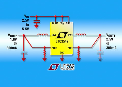照片說明:雙通道 300mA、2.25MHz 同步降壓型 DC/DC 轉換器LTC3547