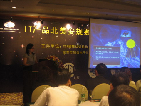 近日,北美地區(qū)最著名的產(chǎn)品認(rèn)證機(jī)構(gòu)—CSA國際認(rèn)證機(jī)構(gòu)聯(lián)合東莞市碩信電子科技有限公司召開了“IT產(chǎn)品北美安規(guī)技術(shù)專題研討會”。會議吸引了100多個(gè)企業(yè)的參加