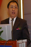 信息產業部部經運司市場與體改處處長黃健忠做電子信息產品污染控制工作與信息產業和諧發展的演講。