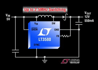 凌力爾特公司(Linear Technology Corporation)推出電流模式、固定頻率、升壓型 DC/DC 轉換器 LT3580,該器件具有 2A、42V 內部開關。LT3580 用 2.5V 至 32V 的輸入電壓工作,非常適用于輸入電源為單節鋰離子電池到汽車輸入的各種應用。LT3580 可以配置為升壓、SEPIC 或負輸出型轉換器。其開關頻率范圍為 200kHz 至 2.5MHz,可通過單個電阻器編程,或同步至外部時鐘,使設計人員能夠最大限度地減小外部組件尺寸并避開“噪聲關鍵”頻段。3mm x 3mm DFN(或 MSOP-8E)封裝加上纖巧的外部組件確保組成占板面積非常緊湊的解決方案,同時最大限度地降低解決方案成本。