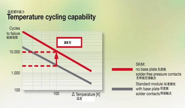 由于焊接疲勞的原因,帶底板的焊接式功率模塊的功率循環能力在較高運行溫度下會大幅度地下降。各種材料熱膨脹系數(CTE)的相互匹配和先進的封裝及綁定技術成為成功的關鍵。