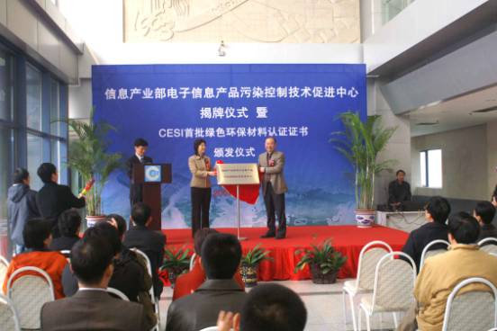 信息產(chǎn)業(yè)部電子信息產(chǎn)品污染控制技術(shù)促進(jìn)中心揭牌儀式暨CESI首批綠色環(huán)保材料產(chǎn)品認(rèn)證證書頒發(fā)儀式11月7日上午在中國電子技術(shù)標(biāo)準(zhǔn)化研究所亦莊科技園隆重舉行。