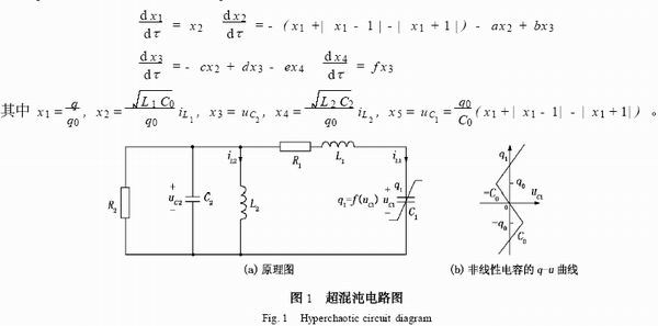 “超混沌電路”由5個線性元件和一個非線性電容元件組成。其電路如圖1(a)所示。圖1(b)為非線性電容元件的庫伏特性。