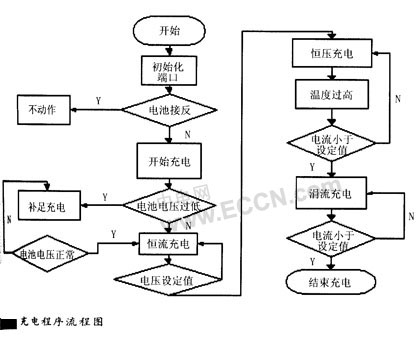 上電后,單片機首先檢查電池是否接反,電池電壓是否因為電而過低,如果電壓過低,先使用小電流給電池充電一間,使電壓達到三階段充電常水平在開始充電,如果電常則直接進入正常充電階首先是恒流充電階段,充電小于0.5 C,一般取0.1 C,電壓會緩慢的上升,當電壓到一定階段(本例中采用電60V)改為恒壓充電,此時隨電過程的進行電池內阻會逐升,充電電流會隨著內阻的而減小,當單片機檢測電流減小到一定的值(小于恒流充電值的1/1 0),立即轉入涓流充電階段,充電電流一般取0.3C,在此階段電池電壓會減小,當充電電流小于0.0 1 C時即可認為電池已充滿,單片機會自動將電池從充電電路中切除。在恒壓階段如果單片機檢測到電池溫度高于45度則自動轉入第三階段,待溫度下降后再轉入第二階段。充滿后通過單片機關斷繼電器,停止充電.。