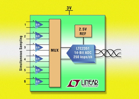 凌力爾特日前推出 1.5Msps 低功率模數轉換器(ADC)LTC2351-14,該器件具有 6 個同時采樣的差分輸入,用單一 3.3V 電源工作,典型功耗為 16.5mW。LTC2351-14 具有 6 個單獨的取樣與保持放大器、一個多路復用器和一個 ADC,非常適用于多相電源測量、多相電動機控制、數據采集系統和不間斷的電源。LTC2351-14 采用 32 引腳(5mm x 5mm)QFN 封裝,可用來設計緊湊、由電池供電和便攜式的數據采集系統。
