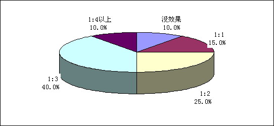 在投入產出比的調查中,有10%的企業認為其投入產出比在1:4;有40%的企業認為其投入產出比為1;3;有10%的企業認為沒有效果。調查中發現,大部分企業對產學研開發體系的投入產出是可以承受的。