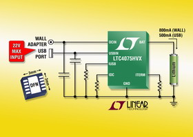 凌力爾特公司(Linear Technology Corporation)推出獨立雙輸入線性電池充電器 LTC4075HVX,用交流適配器和 USB 這兩種不同的電源對單節鋰離子/聚合物電池充電時,該器件可進行高效率的充電管理。該充電器采用恒定電流/恒定電壓算法,可用交流適配器電源提供高達 950mA 的充電電流,或用 USB 電源提供高達 850mA 的充電電流,并自動檢測每個輸入端是否存在電壓。在每種情況下,最終浮動電壓準確度均為 ±0.6%。LTC4075HVX 對兩個輸入提供高達 22V(最大值)的保護。如果所選擇的電源超過了過壓閉鎖限制,那么 LTC4075HVX 會停止充電。LTC4075HVX 禁止涓流充電功能,這對在低電池電量時需要較大充電電流的系統有利。該器件的應用包括 PDA、MP3 播放器、輕型便攜式醫療和測試設備以及大彩屏蜂窩電話。