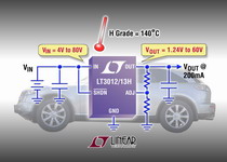 凌力爾特公司(Linear Technology Corporation)推出 LT3012 和 LT3013 的高溫型新版本,這是兩款具有高達(dá) 80V 輸入電壓能力的微功率 LDO。這些 H 級(jí)器件采用 TSSOP 封裝,在溫度高達(dá) +140oC 時(shí)仍保持正常工作,并具有僅為 360mV 的低壓差,同時(shí)提供高達(dá) 200mA 的輸出電流。3.3V 至 80V 的寬 VIN 范圍和 1.24V 至高達(dá) 60V 的可調(diào)輸出使這兩種器件非常適用于汽車、48V 電信備份電源和工業(yè)控制應(yīng)用。另外,這兩種器件具有非常低的靜態(tài)電流,工作時(shí)為 40uA,而停機(jī)時(shí)為 1uA,這使其成為由電池供電的存儲(chǔ)器“保持有效”系統(tǒng)的卓越選擇,因?yàn)檫@類系統(tǒng)需要較長(zhǎng)的運(yùn)行時(shí)間。LT3013 的電源良好(Power Good)標(biāo)記功能是可編程的,用來(lái)指示輸出穩(wěn)壓。