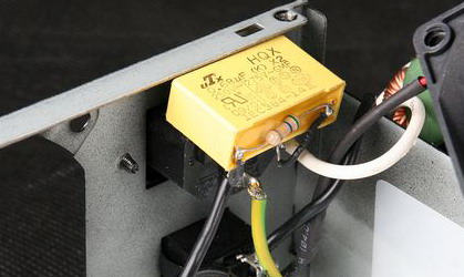 電源高壓濾波電路同樣下料充足,采用兩粒200V/680μF電容!而我們常見的高壓電容單粒容量一般不超過300μF。高規格的濾波電容將能提供更大的冗余空間,相信對產品的供電品質以及電源工作的穩定性都有很大的幫助。