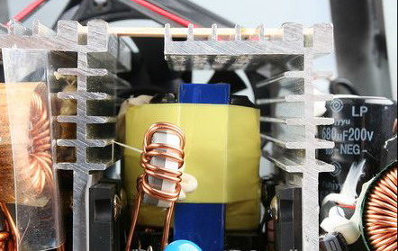 電源采用主動式PFC,因此功率矯正可以達到一個比較優秀水平。開關電源一般采用半橋式功率轉換電路,工作時兩個開關三極管輪流導通來產生100kHz的高頻脈沖波,然后通過高頻變壓器進行降壓,輸出低電壓的交流電,高頻變壓器各個繞組線圈的匝數比例則決定了輸出電壓的多少。多彩 DLP-S650采用典型的半橋式變壓電路,采用三個高頻變壓器進行變壓。