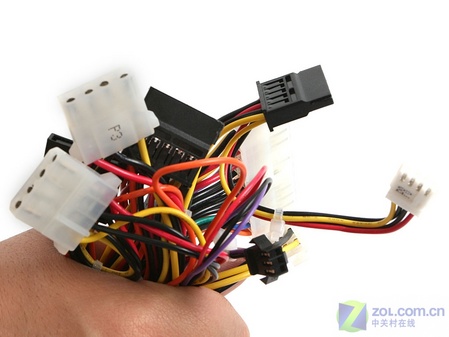 航嘉磐石315在提供輸出接口的類型和數目上,跟以往的電源版本有些區別。SATA接口設備取代IDE接口設備是必然的趨勢,所以在這款電源提供的接口中,SATA接口達到了四個,而D型4Pin的IDE設備接口只有兩個,SATA完全取代了IDE昔日的地位。另外這款電源還提供了一個20+4Pin主板接口、1個小4Pin以及1個方4Pin接口。