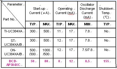 與競爭對手的產品相比,BCD的 AP384XC 具有如下特點: